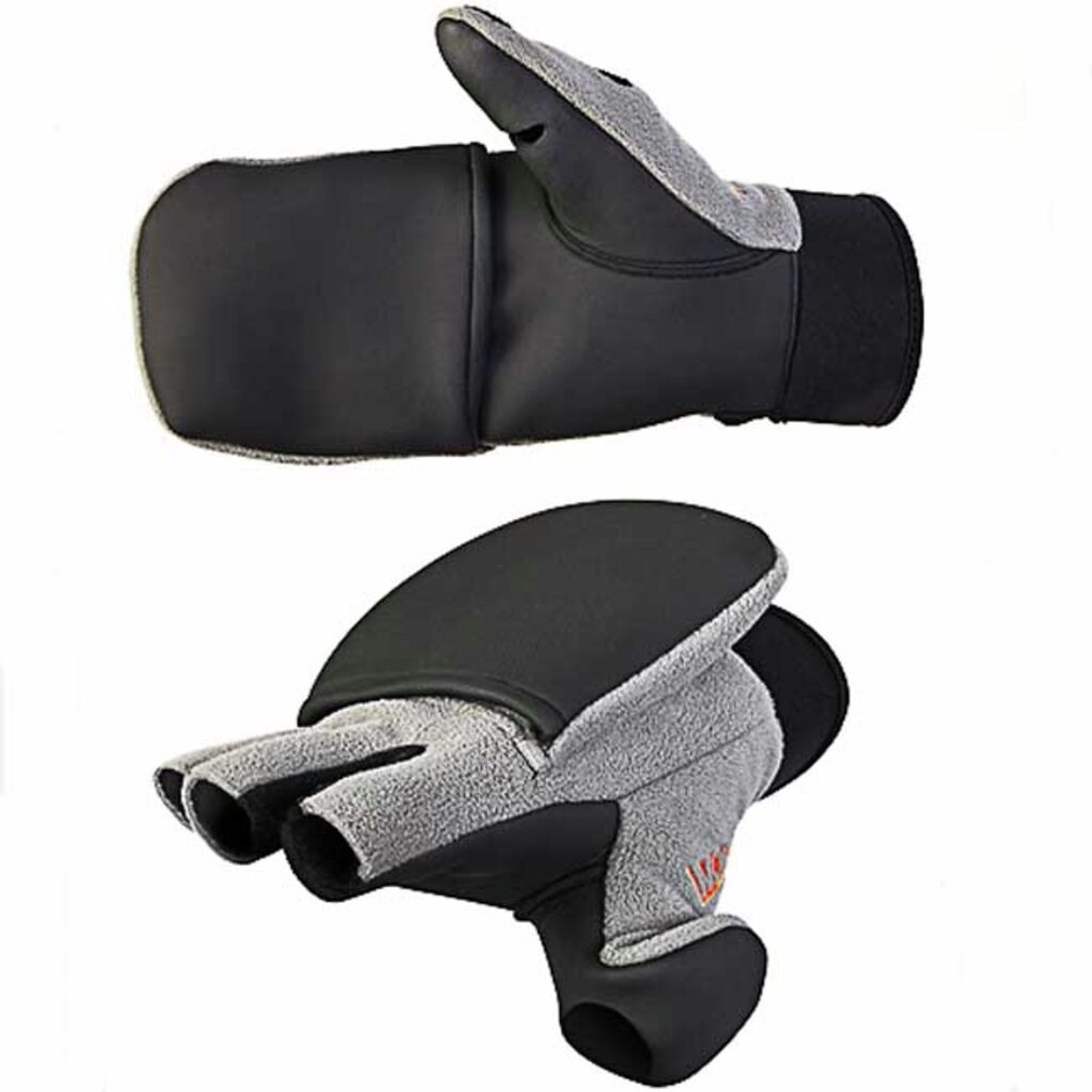 Vėjo nepraleidžiančios, atverčiamos poliesterio pirštinės su PU membrana ir neoprenu. Modelis su atidengtais pirštais, kuriuos dengia sulankstoma kumštinė pirštinė: patogu atliekant įvairias veiklas žvejojant ar medžiojant.