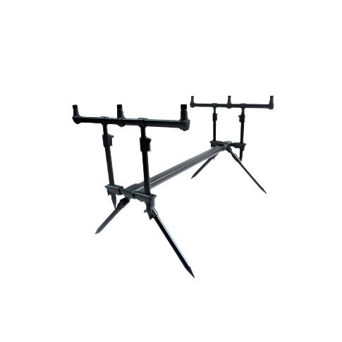 Keturių kojų stovas meškerėms. Stovas puikiai sukomplektuotas minkštame dėkle. Reguliuojamos kojos, stovo ilgis, meškerių laikliai, tad galėsite komfortiškai pasistatyti ir susireguliuoti stovą bet kokiomis žūklavietės sąlygomis.