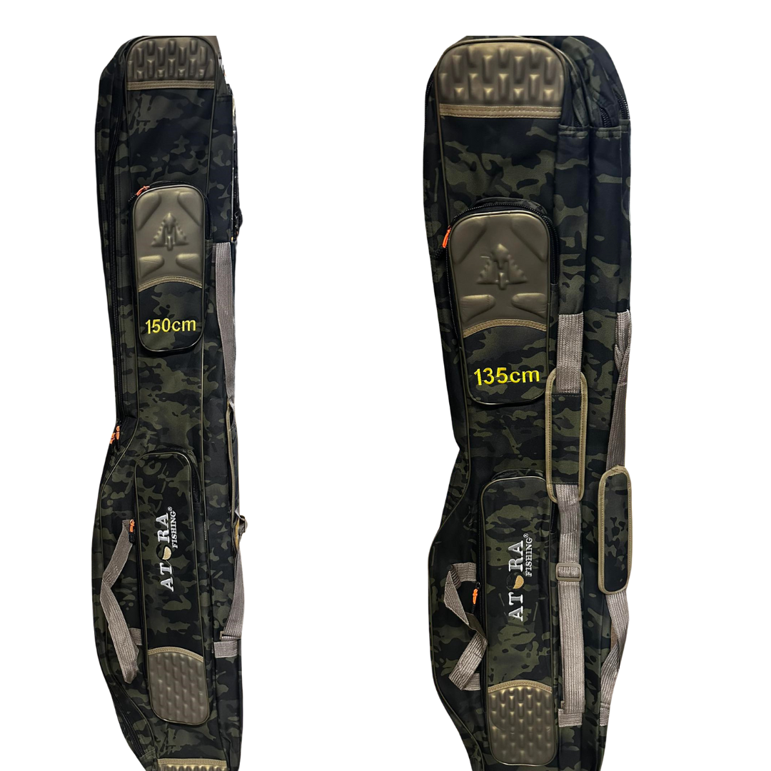 Meškeškerių dėklas turi 3 skyrius ir 2 papildomas kišenes. Į šį dėklą lengvai tilps jūsų meškerės su ritėmis. Tvirti užtrauktukai ir transportavimo petnešos.