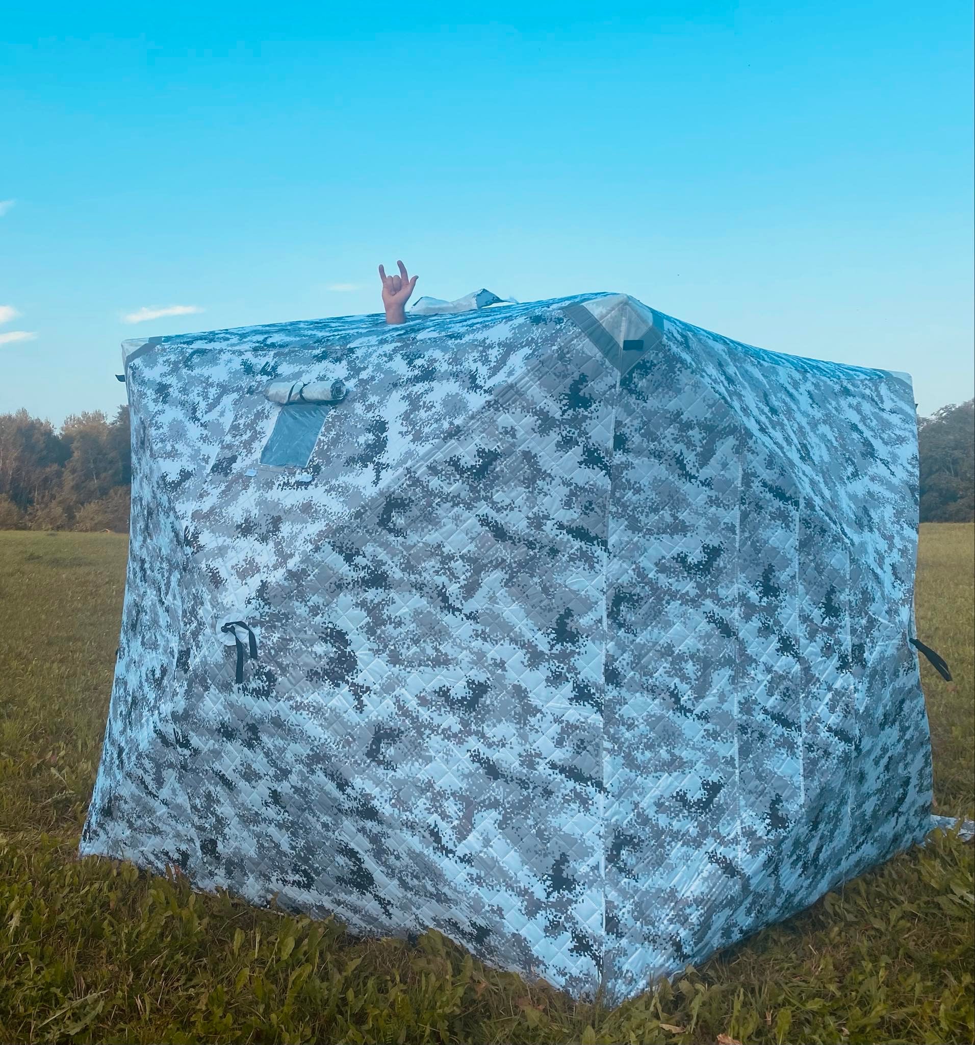 Žieminė palapinė kubas. Palapinė yra skirta mobiliai pirčiai saunai, taip gali būti naudojama kaip žvejybinė palapinė. Tvirta trisluoksnės medžiaga yra pritaikyta aukštoms temperatūroms. Palapinės turi angą kaminui. Yra du įėjimai. Palapinės dydis 220x220x210cm