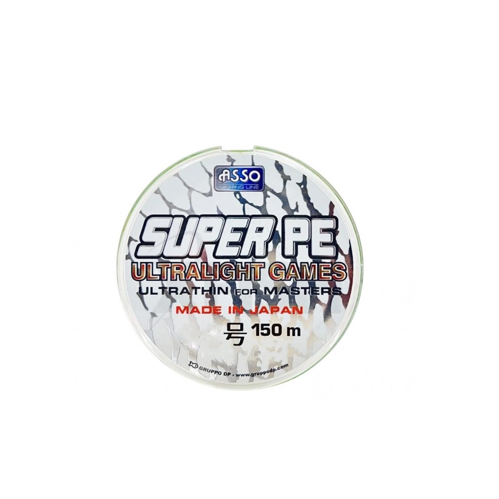 Asso Super Ultra Light Games PE 4X - ryškiai žalios spalvos, keturių gijų pintas valas, puikiai tinkantis visiems spiningavimo būdams. Pagamintas iš naujausios kartos PE pluoštų ir pynimo sistemos, kurie garantuoja ilgaamžiškumą. Valas labai tvirtas, slidus ir puikiai matomas vandenyje. Gerai laiko mazgus, lengvai atliekami tolimi metimai. Puikiai tinka XUL, UL, ir Light tipo spiningavimui.