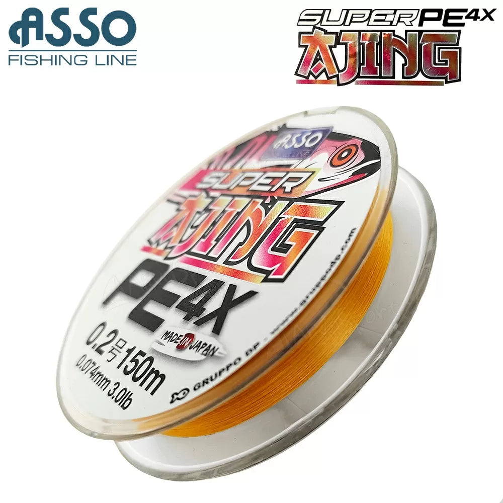 Asso Super Ajing - ryškiai oranžinės spalvos, 4 gijų pintas valas, pagamintas iš aukščiausios kokybės medžiagų, kad būtų užtikrintas ilgas valo tarnavimo laikas. Dėl naujos kartos pynimo sistemos, šis valas itin atsparus dilimui. Valas specialiai sukurtas XUL, UL ir kitiems Light tipo įrankiams. Valas plonas, labai jautrus, tad jaučiamas kiekvienas, net menkiausias žuvies judesys. Didelis valo jautrumas taip pat leidžia atlikti tolimus metimus lengvai. Dėl specifinio svorio, valas greitai grimzta.