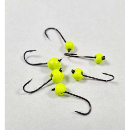 Tungsten Nano Jig Chartreuse  - salotinės spalvos avižos avižadrebiui. Kabliuko dydis #12. Tinkami visiems nano guminukams apie 20-30mm ilgio. Galimi svoriai/dydžiai: